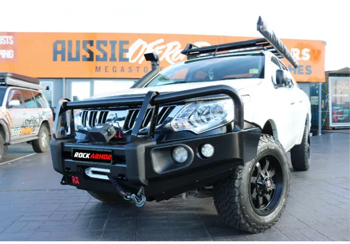 Designed & tested in Australia, Rockarmor’s Elite steel Bull bar provides your vehicle with the ultimate in front end protection. Making sure air flow to the engine is maintained, the Rockarmor bull bar is manufactured with a heavy duty 63mm diameter cross bar which protects the full front of the vehicle against any potential animal strikes that may harm areas like your head lights, front grill and engine components. Designed to be functional for vehicles that drive both on road & off road, the Elite Bull bar has been engineered to store vital accessories such as a Winch, UHF Antenna, safety flags, driving lights plus allowance of a high lift jack recovery. The Elite bull bar comes complete with L.E.D fog lights, L.E.D indicators, under body stone guards and is finished with a high quality powder coat that will withstand Australia’s harsh weather conditions. 100% ADR Compliant, and Air Bag approved, Rockarmor’s Elite bull bar is put through a strict set of tests that gives you confidence your vehicle will be protected at all times.